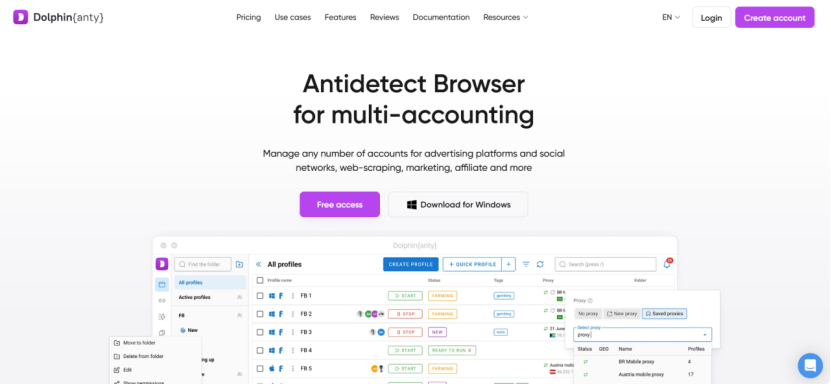 - Bulk account management and batch proxy assignment