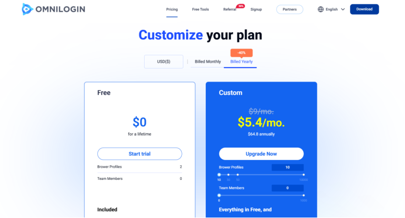 - Free Plan: Limited profiles for testing basic features