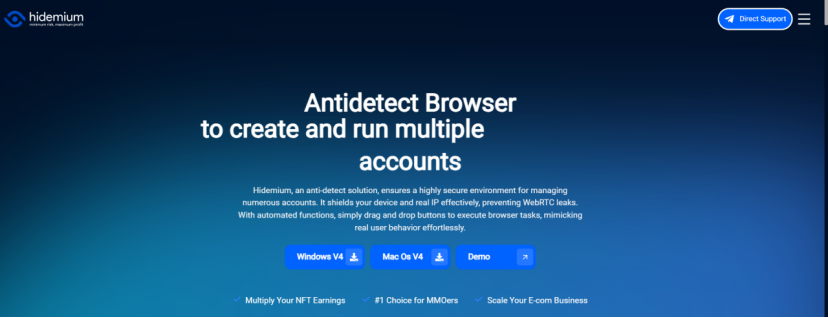 Hidemium is a reliable anti-detect browser for secure multi-account management and online anonymity. It creates isolated browser profiles with realistic device fingerprints and built-in proxy support, helping users reduce detection and account bans. Widely used in marketing, e-commerce, and social media, Hidemium supports both desktop and mobile device simulation, automation, and team collaboration.