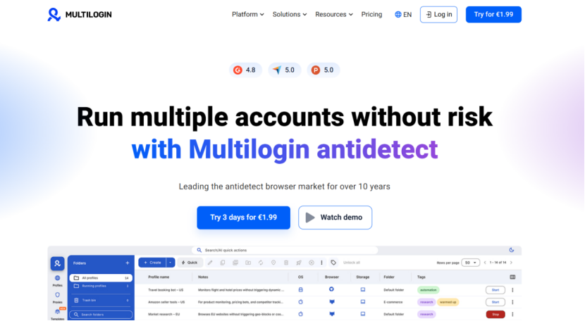 Multilogin is one of the oldest and most respected antidetect browsers on the market, especially popular in Europe and North America.