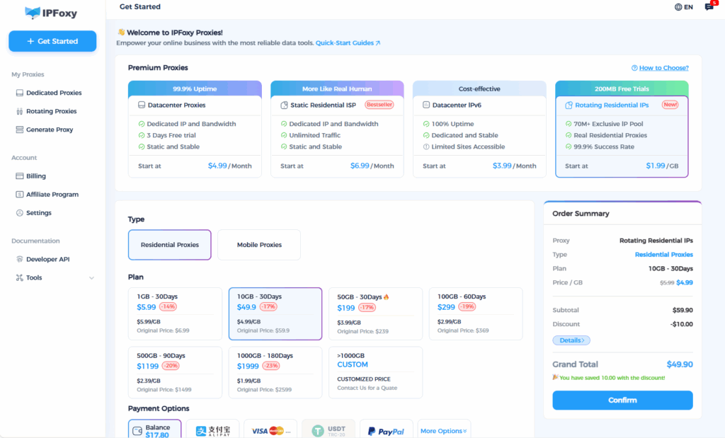 If you need a dynamic residential IP for large-scale Amazon scraping, IPFoxy is one of the highly rated professional service providers in the industry. It offers real residential IPs from home broadband, high-quality and stable ASNs, coverage of core global regions, and supports per-request rotation, sticky sessions, and API/port switching to adapt to different scraping scenarios.