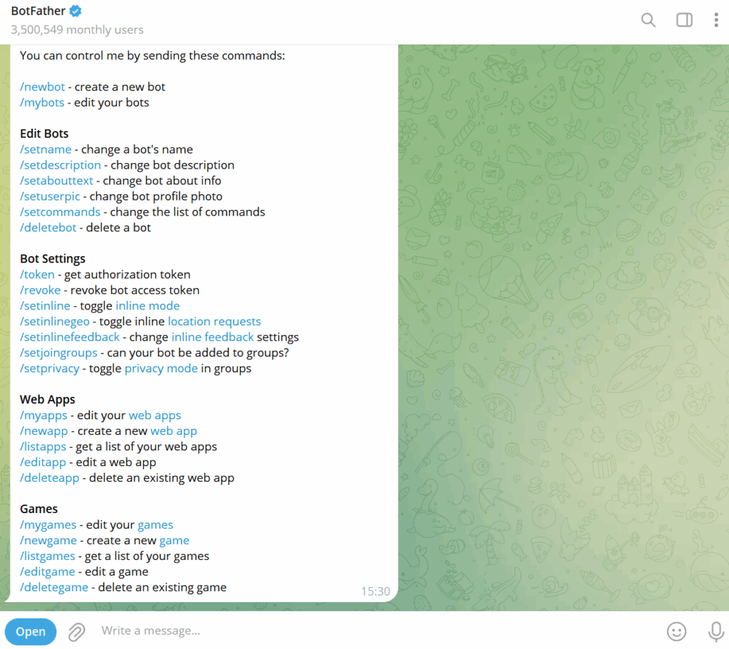If you are a tech enthusiast or need advanced automation, use the Telegram Bot API to set up Webhook code, enabling your bot to communicate with external servers for: