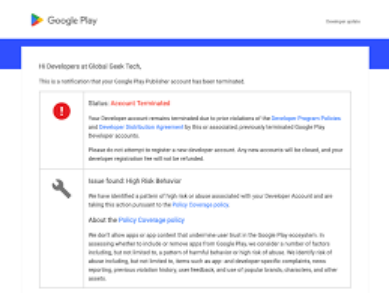 I. Main Reasons for Google Play Developer Account Suspensions