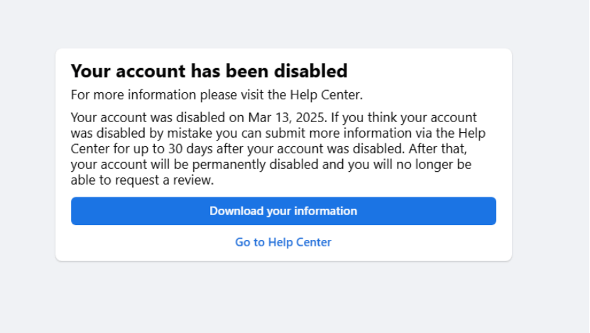 This typically involves partial API access suspension. The app still exists, but core APIs such as Login, Marketing API, or Conversions API cannot be used. These cases are usually triggered by abnormal behavior patterns rather than confirmed policy violations. - Developer Account Disabled