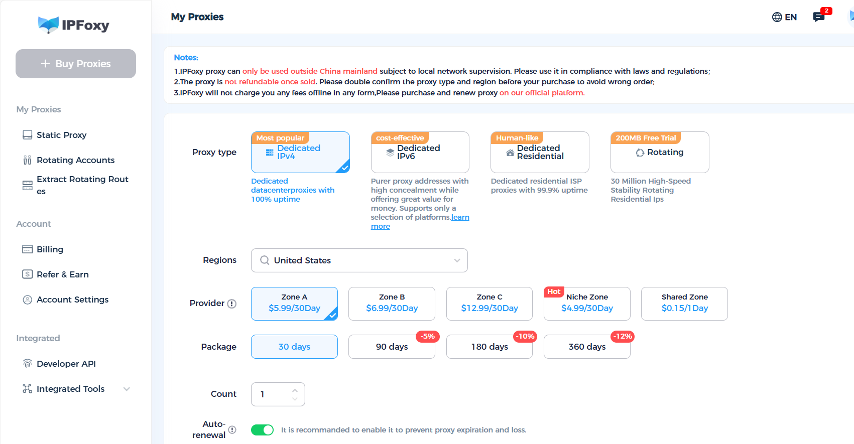 It is recommended to use the static exclusive residential proxy provided by IPFoxy, which has high purity and avoids IP quality and association issues.