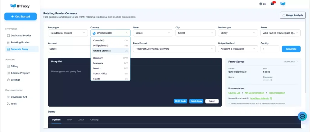 IPFoxy’s residential proxy pool supports 200+ countries and regions, with lines supporting city-level positioning. It is compatible with various verification scripts for periodic rotation or rotation per request to support the execution of verification scripts.