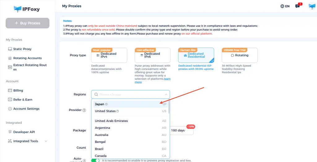 Proxy IP Tool: IPFoxy’s residential proxy service provides native IPs and dual-ISP resources, featuring low IP fraud scores and high purity. It is designed to improve traffic distribution accuracy and reduce the risk of traffic restrictions.