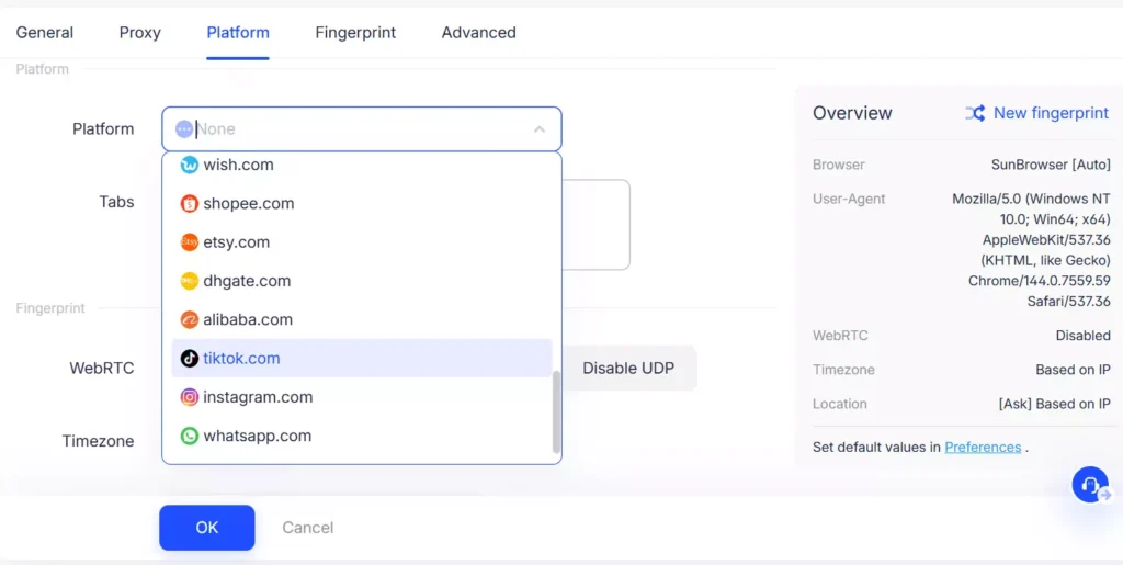 - Anti-detect browser approach: Create multiple browser profiles and randomly generate or customize the device fingerprint parameters for each environment.
