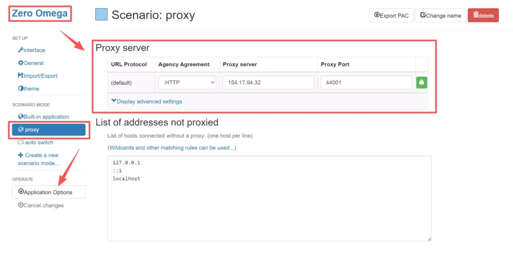 The following example demonstrates how to configure a proxy in the Chrome browser.