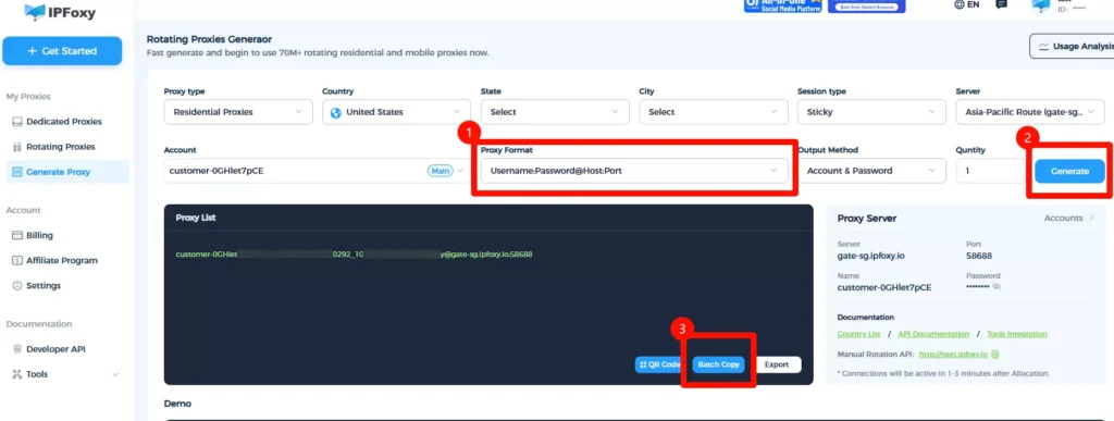 High-quality rotating residential proxy solutions are recommended. If IPs are reused or abused, restrictions are easily triggered. Services like IPFoxy provide clean IP pools with flexible rotation mechanisms, reducing detection risk. You can also configure exit locations based on different tasks.