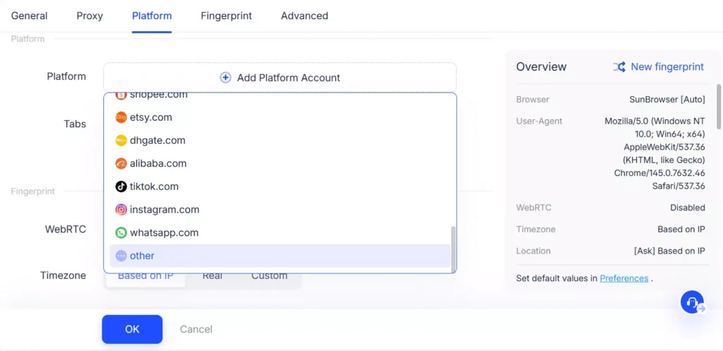 Using an Anti-detect browser to create a separate environment for each account, combined with proxy configuration, ensures proper isolation at the device level and improves account stability.