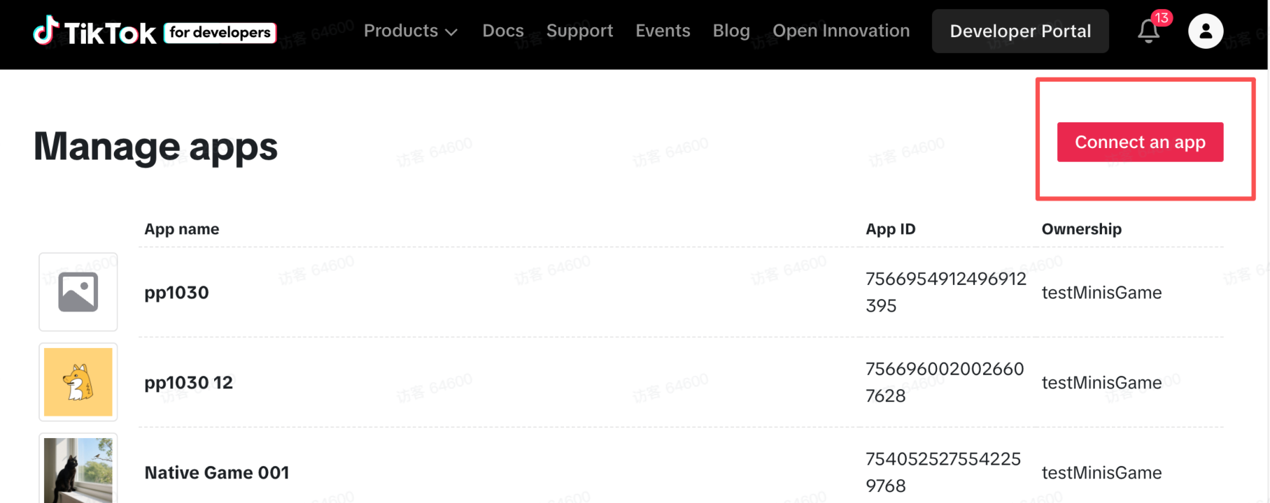 In the developer console, select “Create App,” choose your organization, and set the type to “TikTok mini game.”