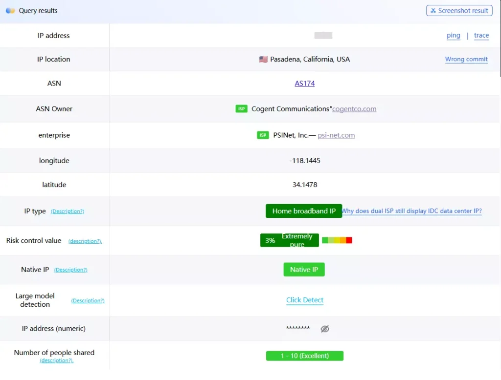 - Check IP reputation: Historical behavior and trust scoring are key indicators of IP quality. IPs that are overused or associated with abuse are more likely to be flagged. While there is no universal standard, mainstream IP checking tools can be used for evaluation. Tests show that IPFoxy’s native dedicated static residential IPs maintain high cleanliness and stability, effectively avoiding risk-control blacklists caused by datacenter IPs.