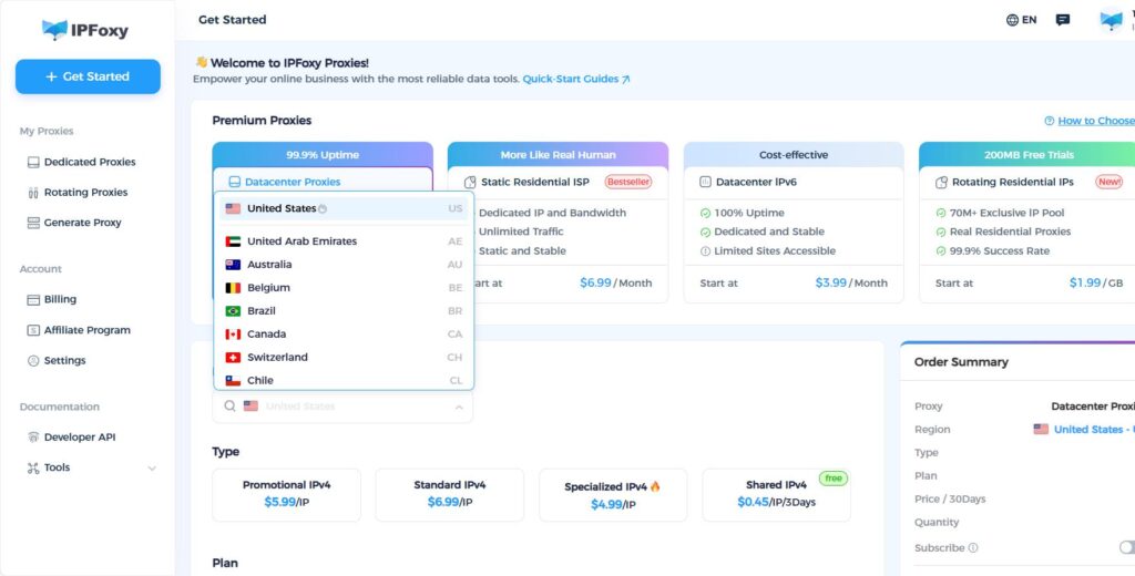 - Obtain proxy details: Choose IP locations that match your target audience and get proxy host, port, and protocol information