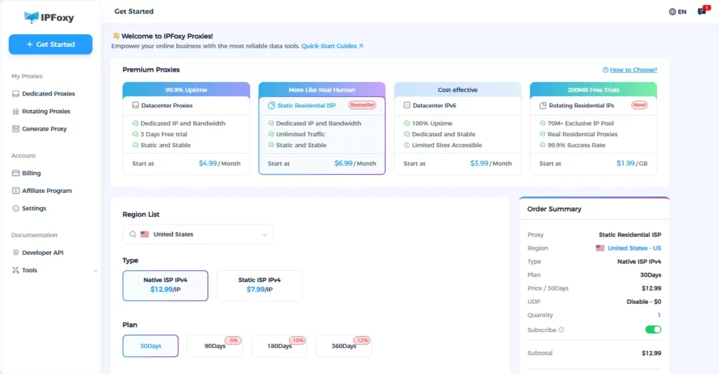 - Clean network environment: IP quality directly affects whether Pins enter the traffic pool. Datacenter IPs or shared nodes are easily flagged as bot activity. Many teams use IPFoxy dedicated static residential proxy, which provides real ISP attributes and simulates real user environments, avoiding IP switching and reducing risk