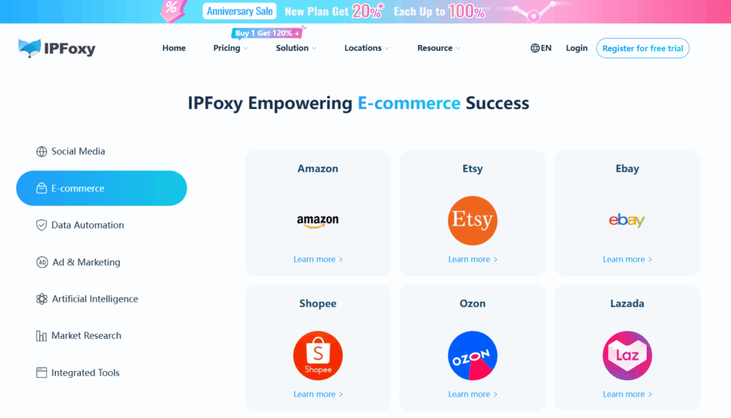 Etsy logs every login IP. If multiple accounts sign in under the same IP, they are suspected of batch operations. Therefore, stable, genuine proxy IPs are needed to simulate real buyer networks. Here we recommend IPFoxy high-quality proxy IPs, which provide residential native IPs that closely mimic real buyer environments, making it harder to trigger risk control. They integrate seamlessly with fingerprint browsers to achieve a “one account, one environment” setup. Sellers can first claim IPFoxy’s free trial to test network stability before applying it at scale across account matrices.