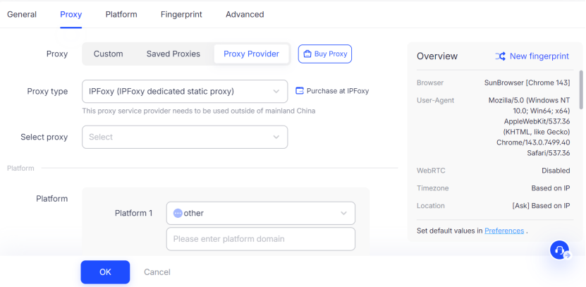 Before ticket drops, resellers need to register multiple accounts, complete Verified Fan registration, and build account trust. At this stage, stability and independence are the core requirements. Many professional teams choose static residential ISP proxies (such as those provided by IPFoxy) and integrate them with fingerprint browsers.